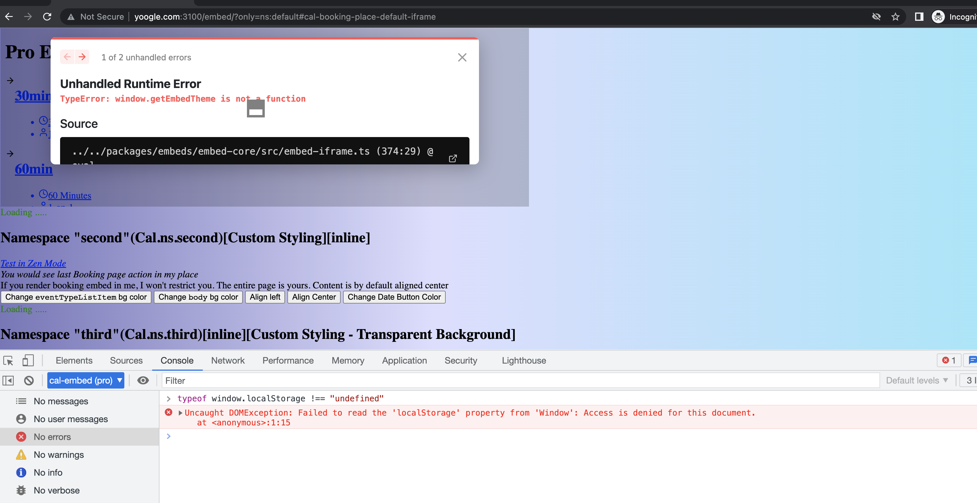 @emrysal Yeah, Chrome is very strict. You are not even allowed to read localStorage/sessionStorage properties in cross-domain incognito mode. |