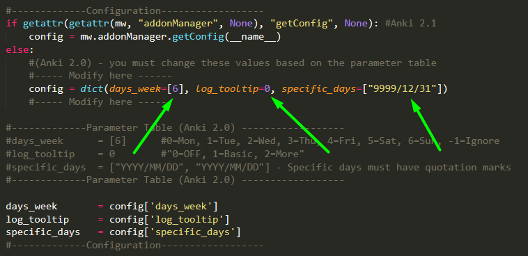 - Added parameterization in the Addon configuration (Anki 2.1)