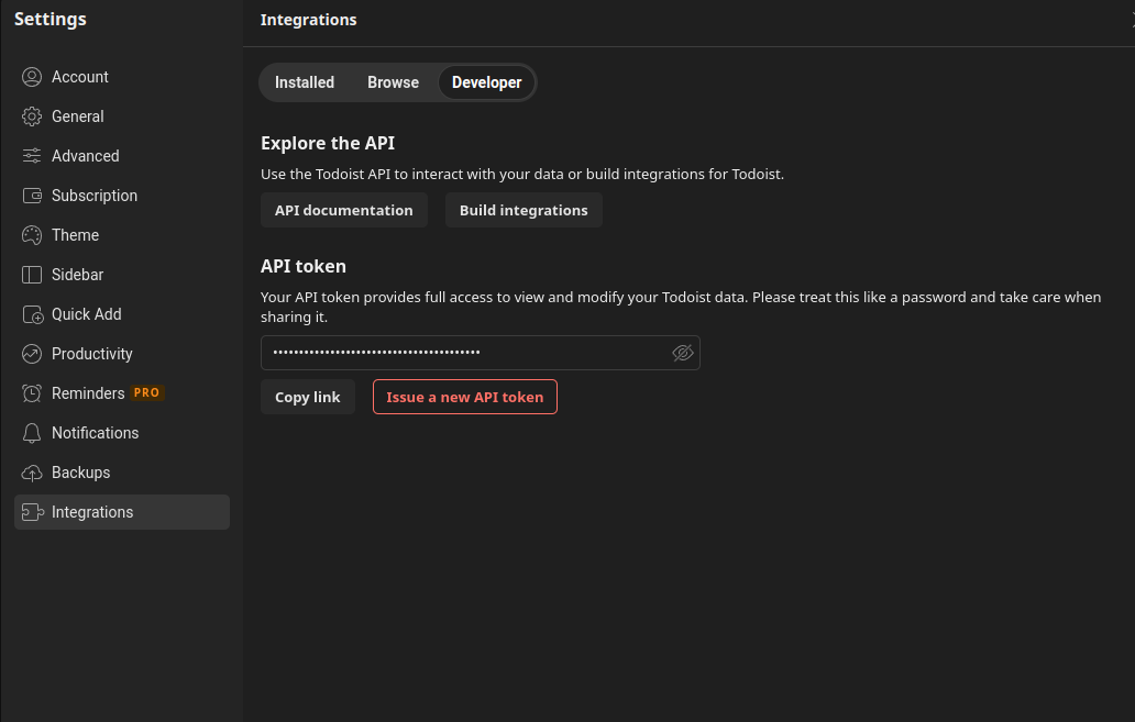 ALLOWLISTED_PLUGINSin the.envfile to avoid being prompted with a warning when loading the plugin:ALLOWLISTED_PLUGINS=AutoGPT-Todoist-Plugin TODOIST_TOKEN=Your_api_token