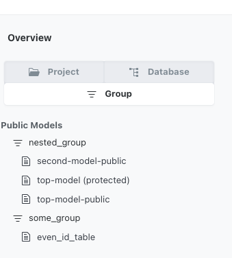 Adds a new tab to the left nav that lists the public models by group.