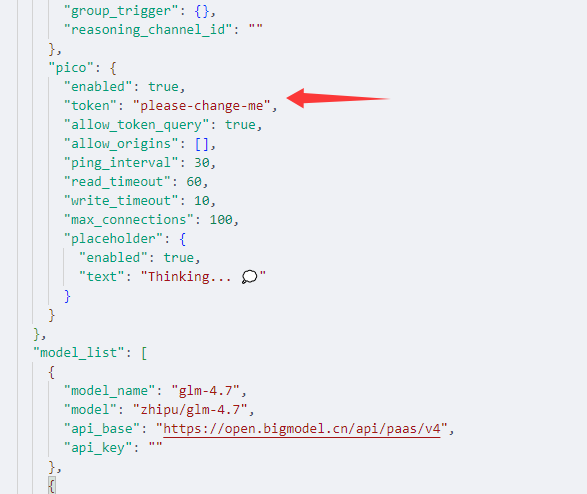 "token": "please-change-me"请将