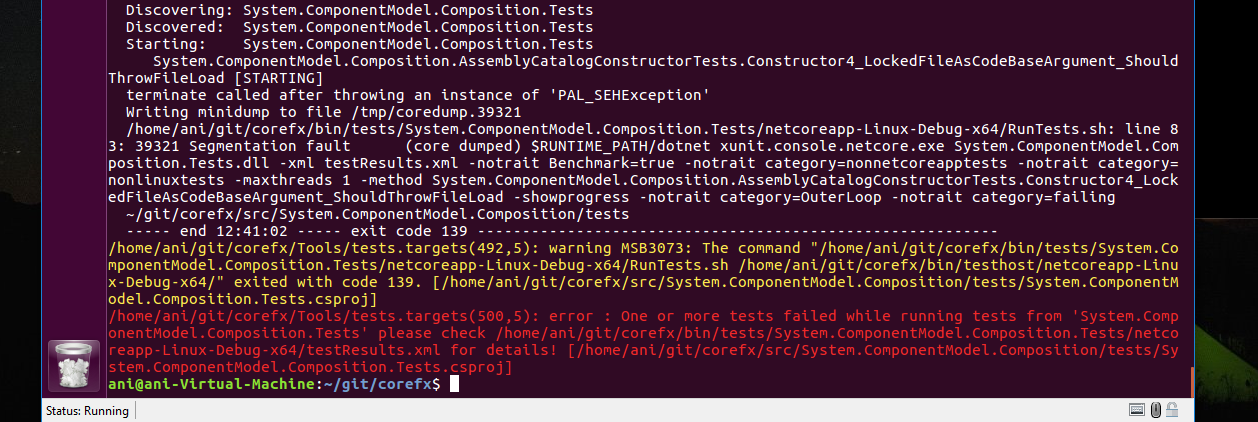 The packaging build is hitting these failures: @ericstj, the netfx build is hitting this failure: @danmosemsft, and the Linux leg failed because every distro fireballed with a seg fault in the System.ComponentModel.Composition.Tests tests, e.g. |