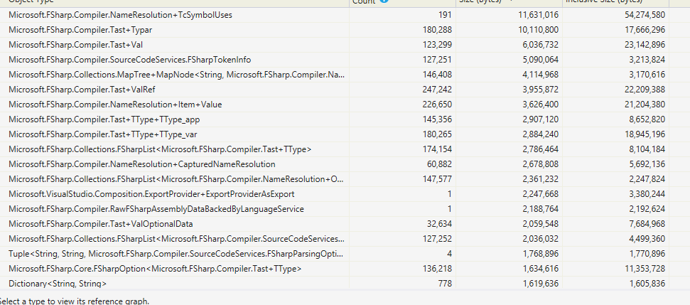 @dsyme how do you read the memory dump of the all objects and their types like that? Is it from the "Debug Managed Memory" that appears from a minidump file, which is only available in VS Enterprise? Is it possible to read it without VS Enterprise? |