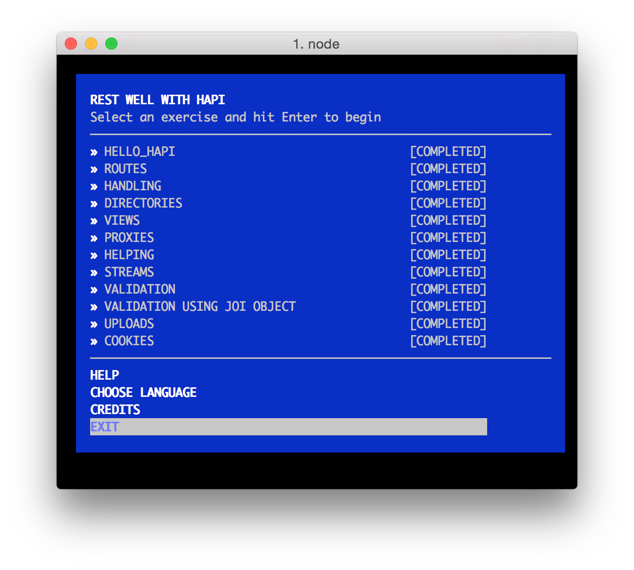 e.g: https://github.com/hapijs/makemehapi/tree/master/exercises/hello_hapi/solution