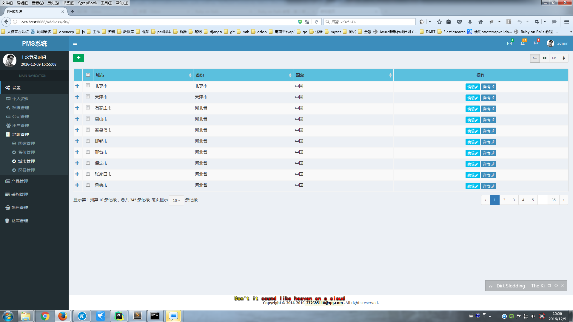 goERP 基于beego的进销存系统 数据库的结构参考了odoo的设计 管理界面采用的是开源的adminLTE 由于公司销售的是黄金饰品,产品管理上面需要两个单位来管理,故在设计上直接使用了两个单位(暂时不添加第二单位) 数据库采用的是postgresql,版本中的数据库连接到自己的阿里云服务器 包含了全国省市区的地址信息,初始化数据在init_xml中,包括系统管理员的帐号信息 目前底层结构设计改动变化较大