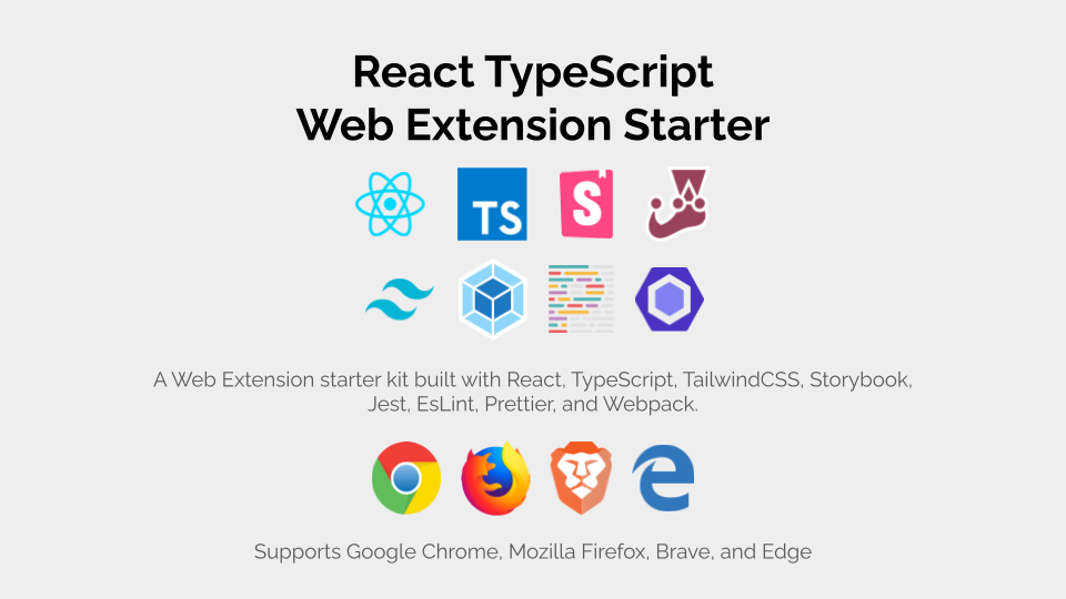 🖥️ A Web Extension starter kit built with React, TypeScript, Storybook, EsLint, Prettier, Jest, TailwindCSS, & Webpack. Compatible with Google Chrome, Mozilla Firefox, Brave, and Microsoft Edge.