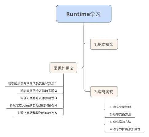 呵呵,扯远了,回到Runtime作用上。无所不能的事情就不一一介绍了,梳理下较为可能用的几个地方: