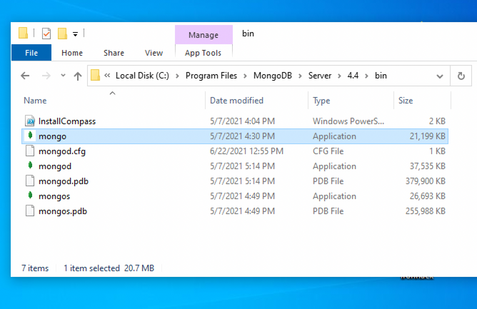 Inside the MongoDB folder, follow this path