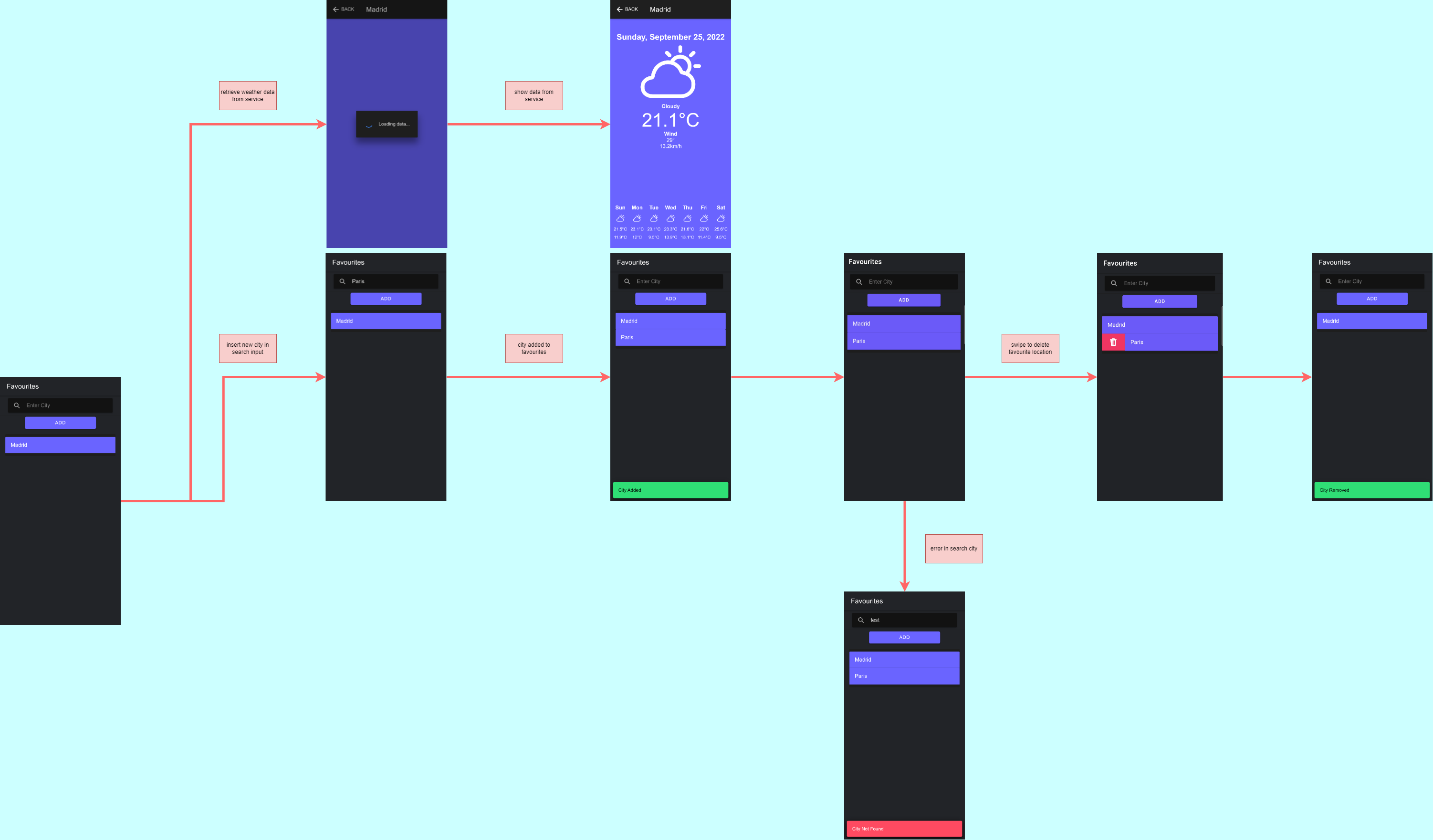 Weather-app Figma Project (Mockup): https://www.figma.com/file/6RYUqr6iaru0UVkrQVlGqz/WeatherApp?node-id=0%3A1 Development server Run ionic serve for a dev server. Navigate to http://localhost:8100/. The app will automatically reload if you change any of the source files. Build Run ionic capacitor build to build the project. Further infos: https://ionicframework.com/docs/cli/commands/capacitor-build Flowchart: API used: https://open-meteo.com/en https://restcountries.com/