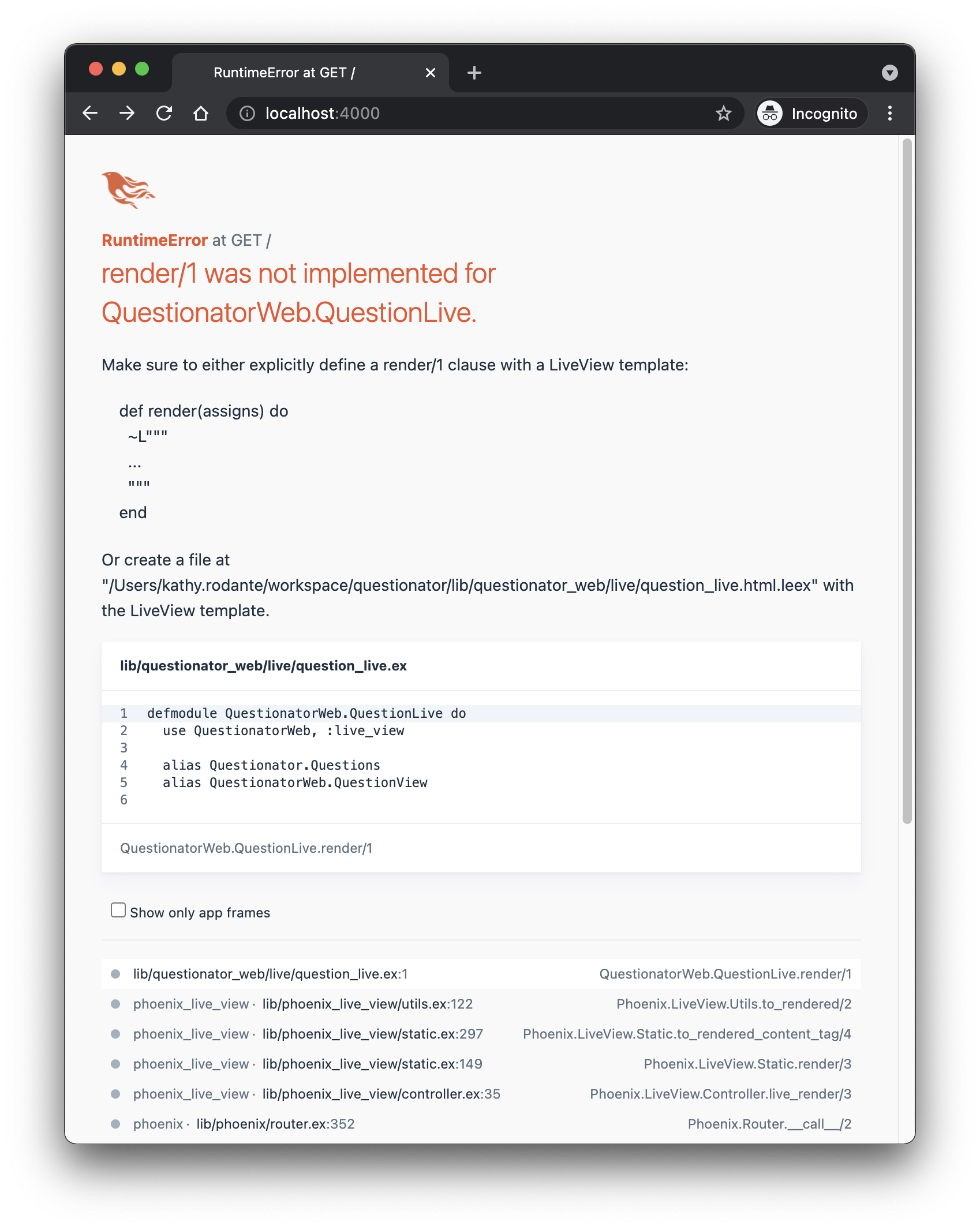 Remember that QuestionView module we made back when we were connecting QuestionLive with our template? Well now we get to add some helper functions there to help with visuals!