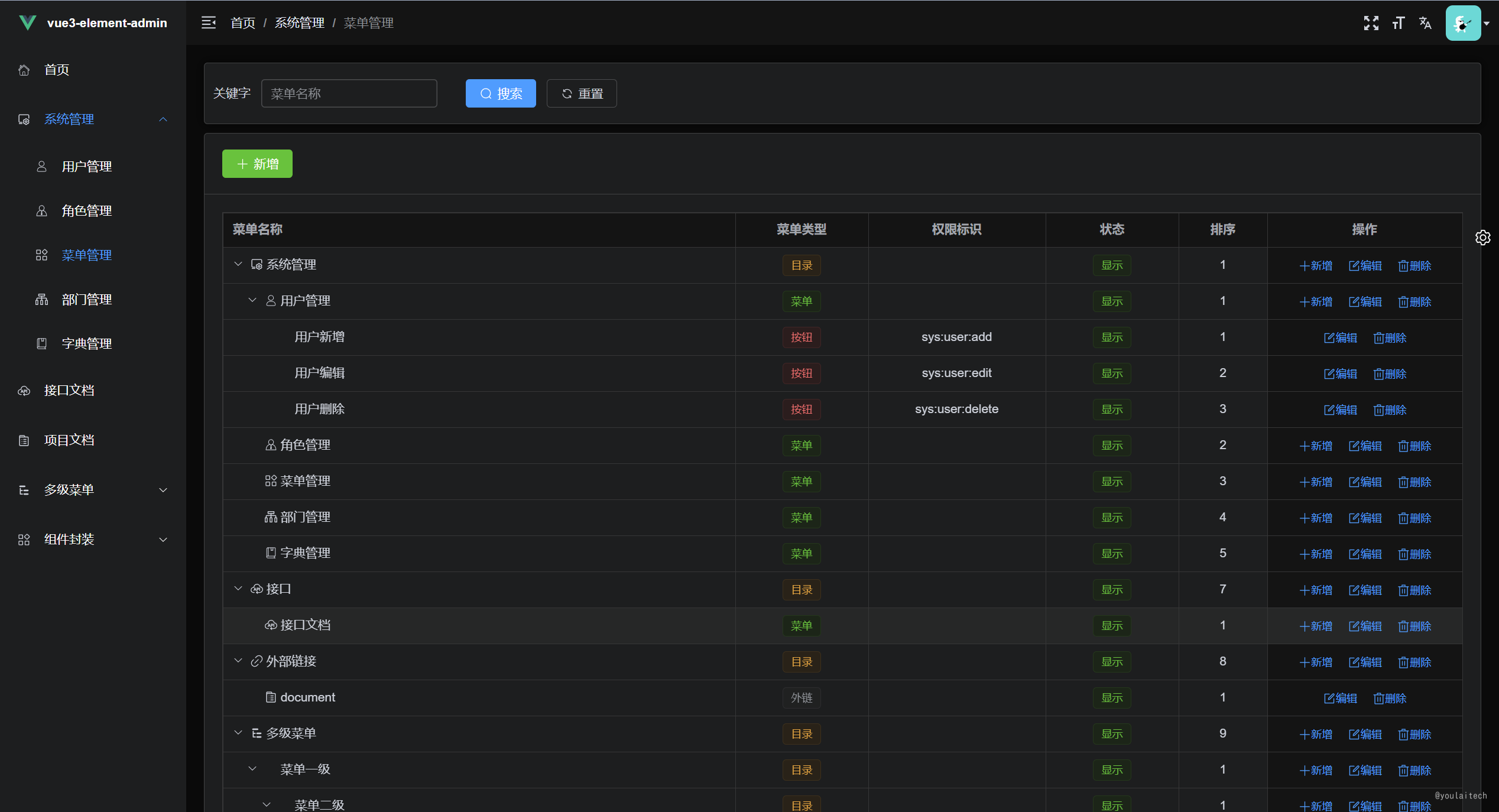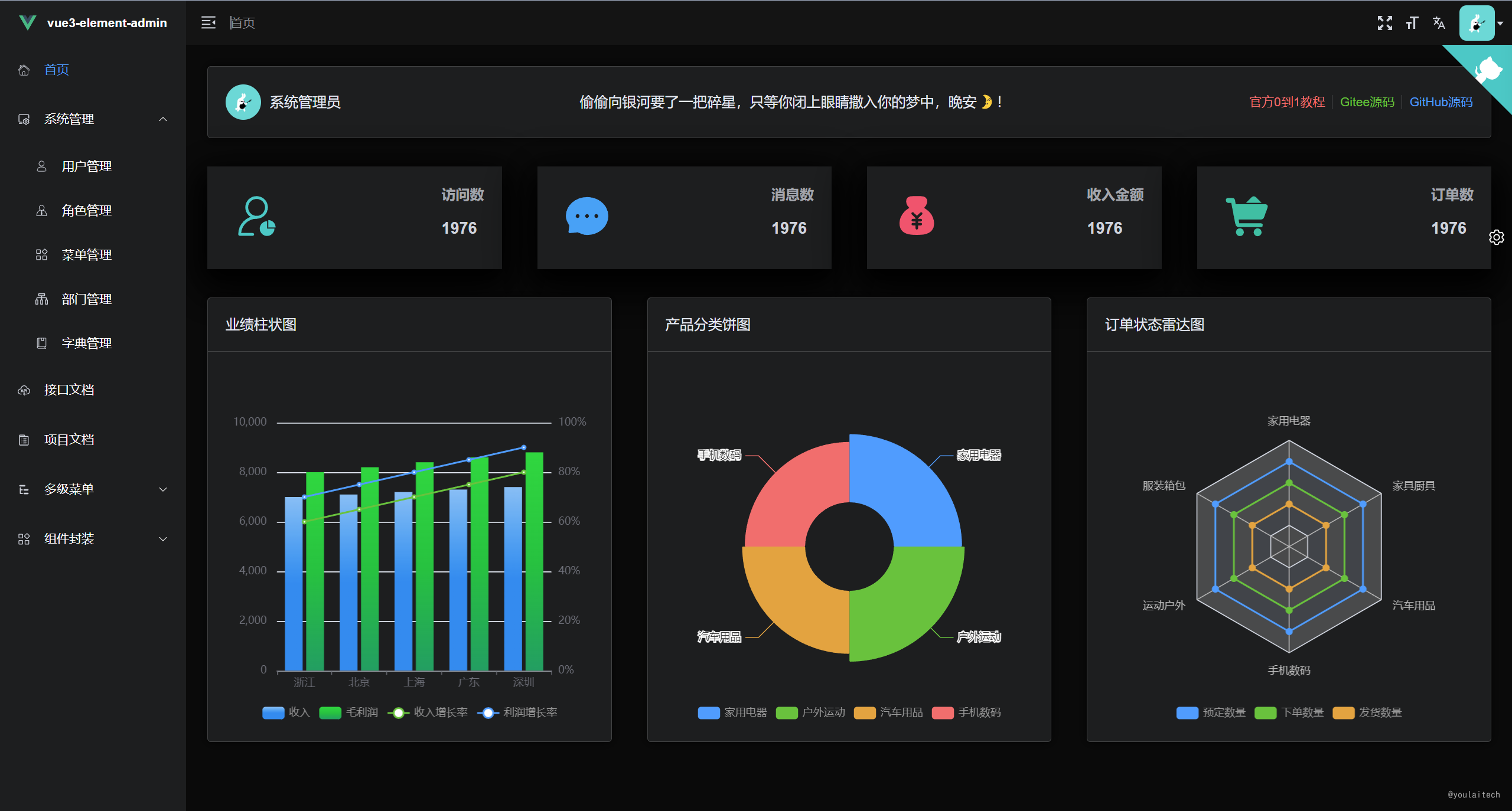 - 基于 vue-element-admin 升级到 vue3 版本,无自定义封装,易上手,减少学习成本。