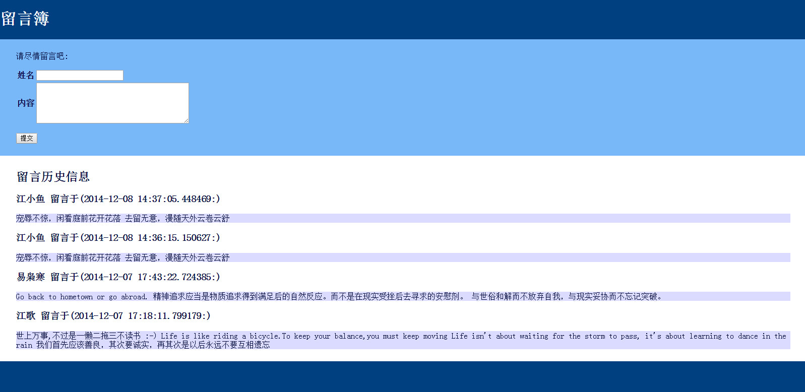 第 0023 题: 使用 Python 的 Web 框架,做一个 Web 版本 留言簿 应用。