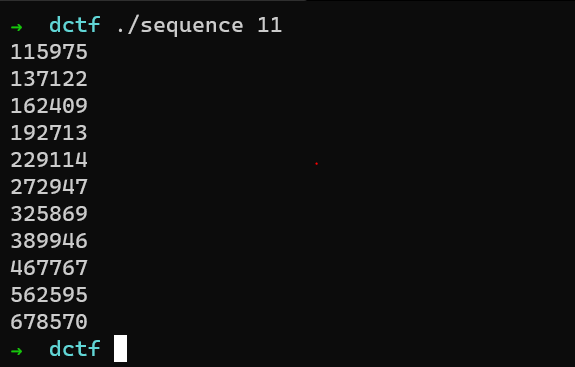 Now, I just had to supply this c program the number returned by the binary and it will return the number sequence required by the binary to print the flag. Let's run the binary and test this.
