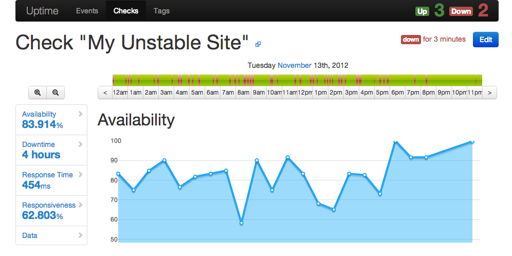 - Detailed uptime reports with animated charts (powered by Flotr2)