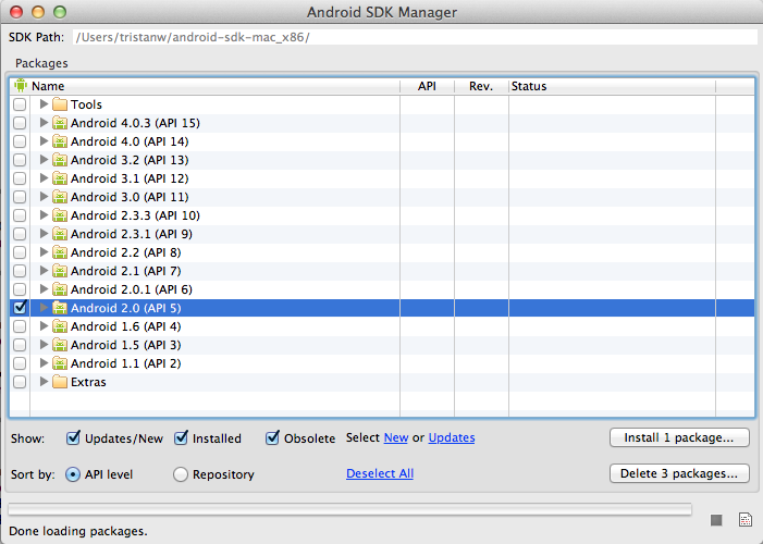 If you have not already installed the Android SDK do so now! It's also a good idea to make sure you're running the latest version.