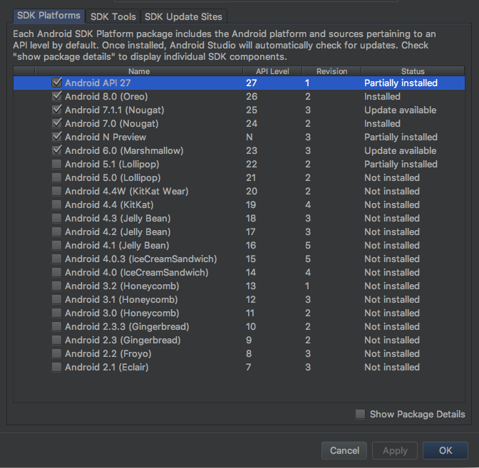 </manifest>If building from your local machine (as you should be), ensure you have the following items installed or updated in Android SDK Manager
