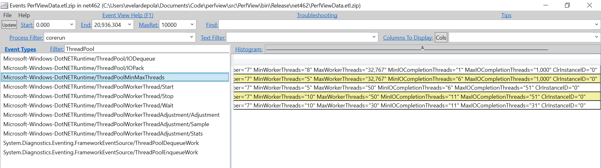 Add ThreadPoolMinMaxThreads event to perfview.