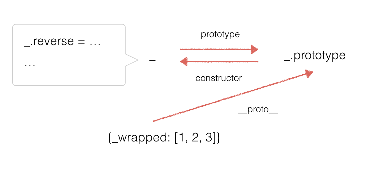 _([1, 2, 3])返回一个对象,为{_wrapped: [1, 2, 3]},该对象的原型指向 _.prototype