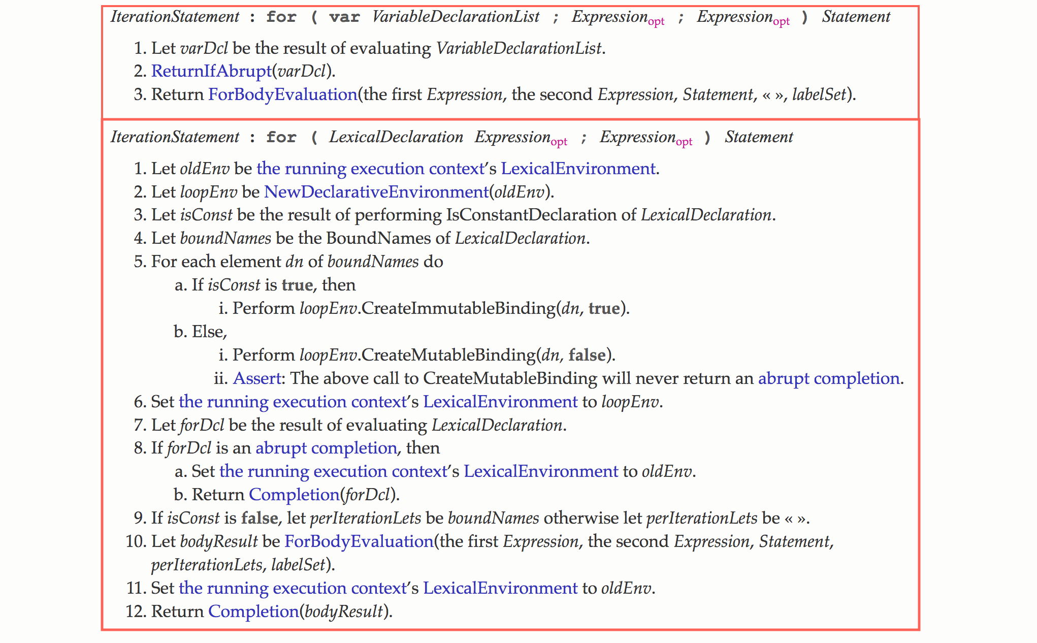 我们查看 ECMAScript 规范第 13.7.4.7 节: