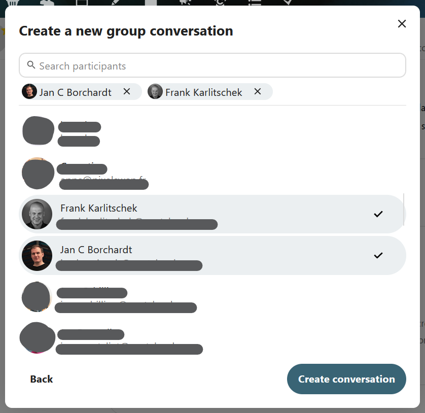 - The checkmark could have more margin all around. Even better: Align all checkmarks to the right, similar to creating a new group conversation in Talk