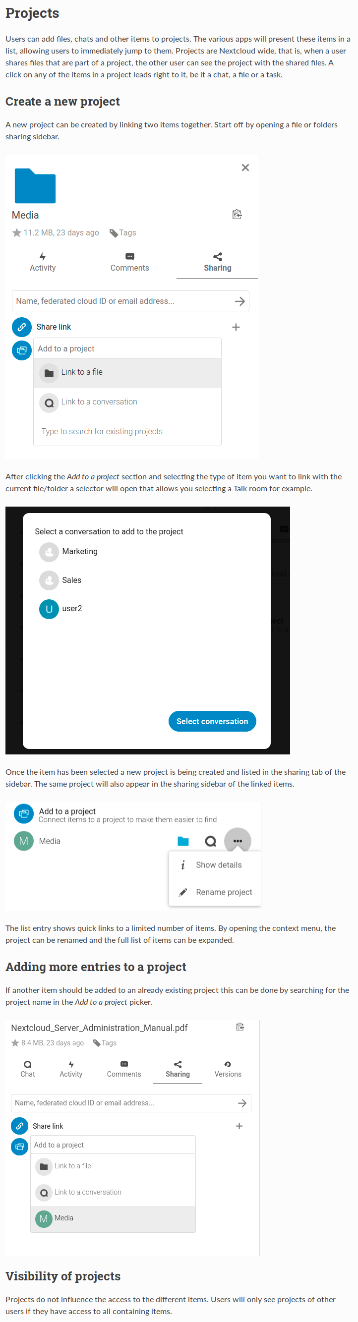 Add basic documentation on projects #1589