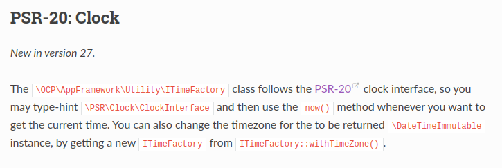 feat(developer): Document PSR-20 implementation of ITimeFactory #9722