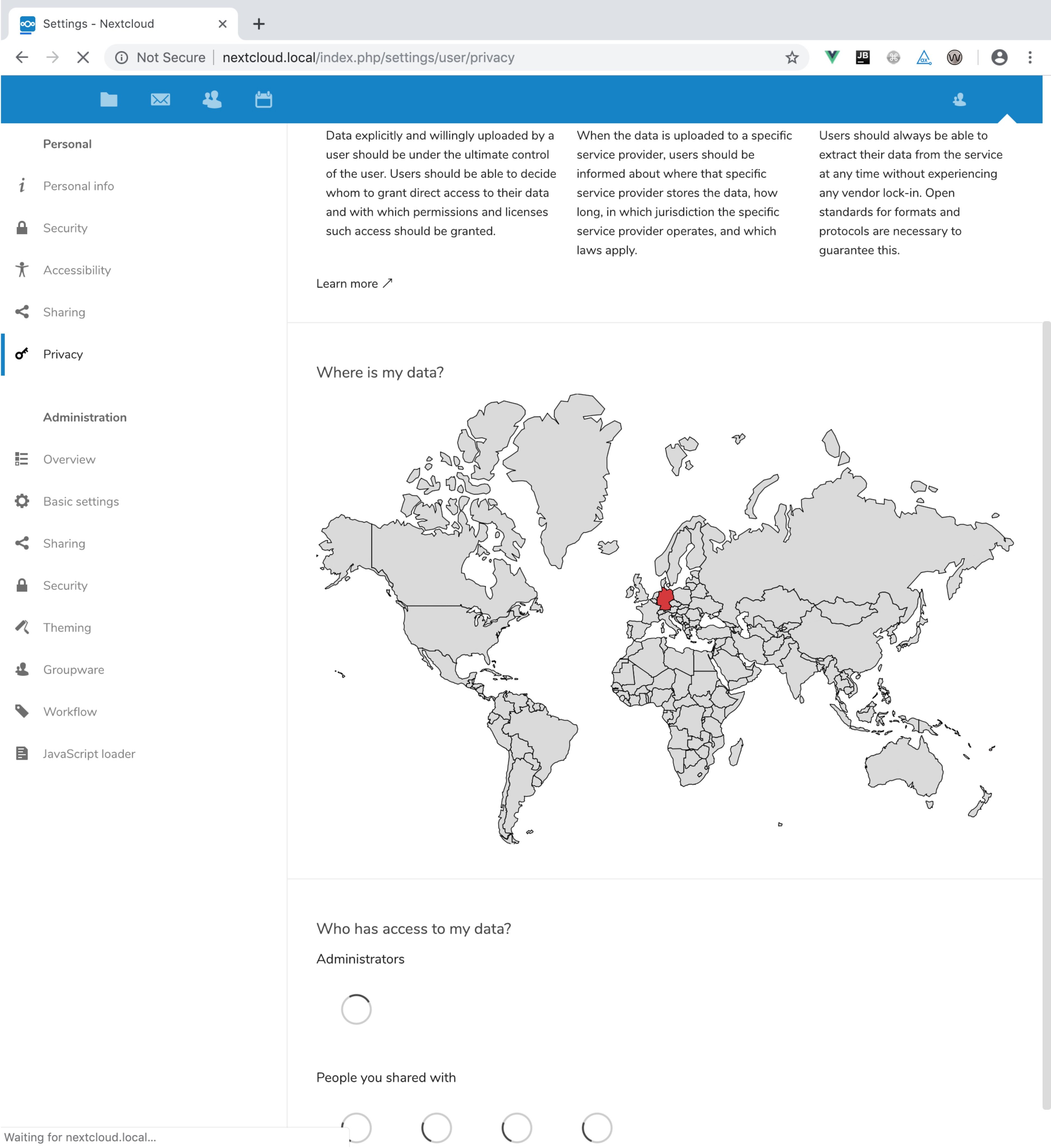 @MariusBluem I’d say let’s do any further changes in follow-up pull requests. :) The "Where is your data?" is direct and nice. cc @nextcloud/javascript @nextcloud/designers for review as well 🙂 |