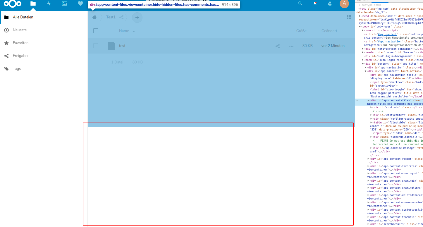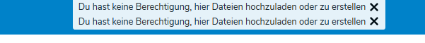 @juliushaertl are you able to upload files via drag and drop into the browser with NC16.0.2 now? I'm just asking because it stopped working for me after the update and I'm only guessing, that this might have to do with this fix. The only error message I see is from NC in the browser: In English: "You have no permission to upload or create files here." So no matter if I drag the file into the upper or lower area, the upload fails. The only way the upload works right now is via the + button. I'm using: |