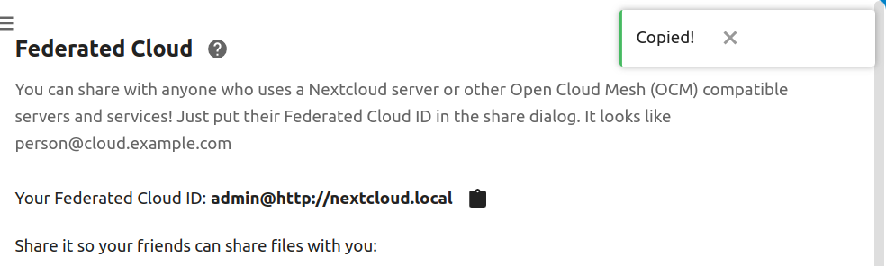 Add success message to personal settings clipboard button #36250