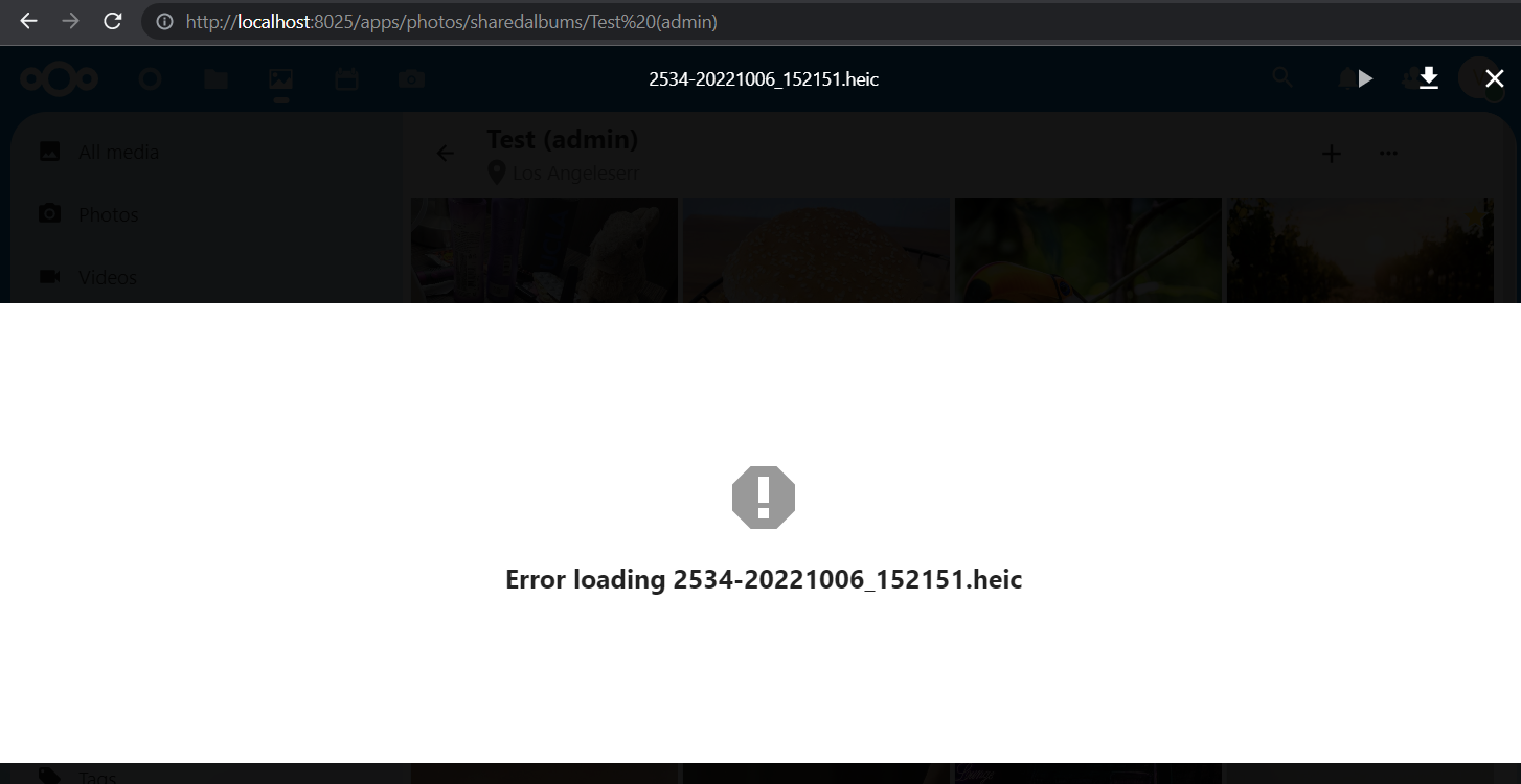 @skjnldsv @artonge I just want to point out that things are broken (this is latest stable25). Everyone doesn't use JPEG :) Also closely related, with a lot of upvotes: nextcloud/photos#1452 |