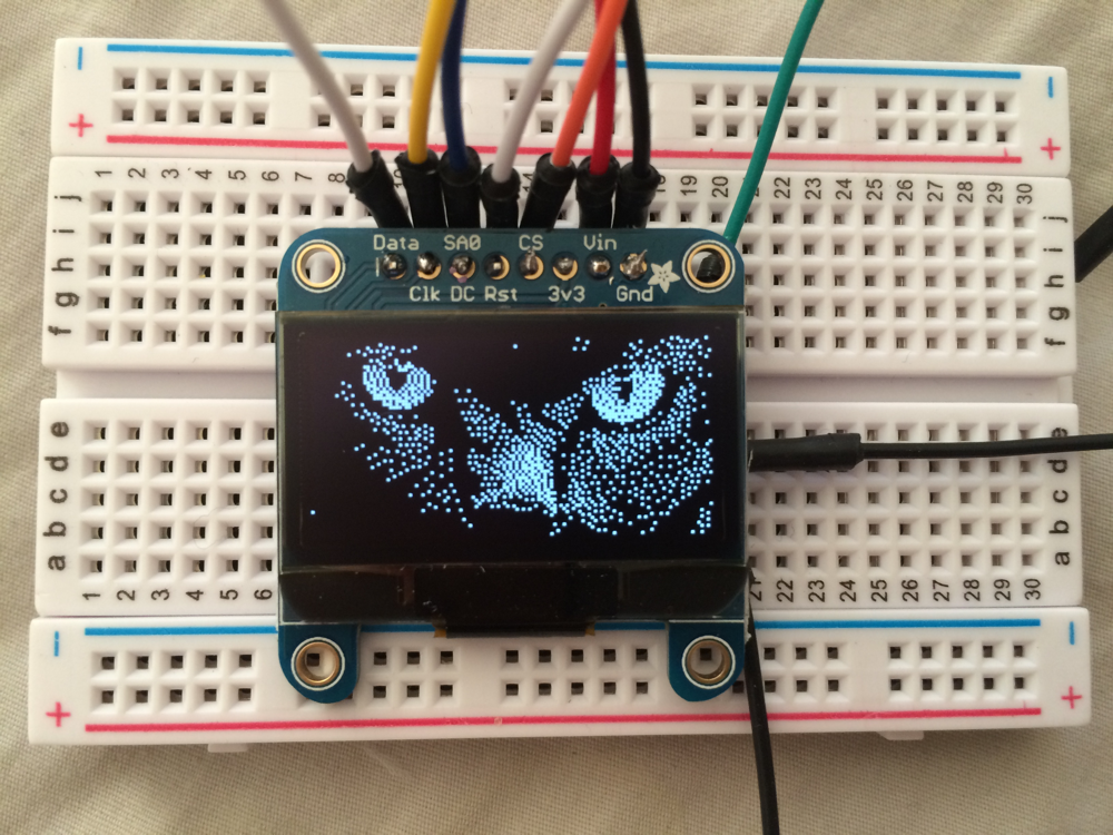 IMPORTANT NOTE: Using SPI will make your screen update and draw VERY slow. Manual hardware SPI over USB is the only way currently to do this within Johnny-Five, which is not optimized for the normal speed you can expect from SPI in general. Sorry about that. Here is a video I took to show this.