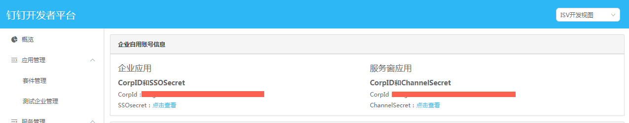 二、在企业OA后台【企业应用-工作台】点击进入开发者后台,获取CorpID与CorpSecret