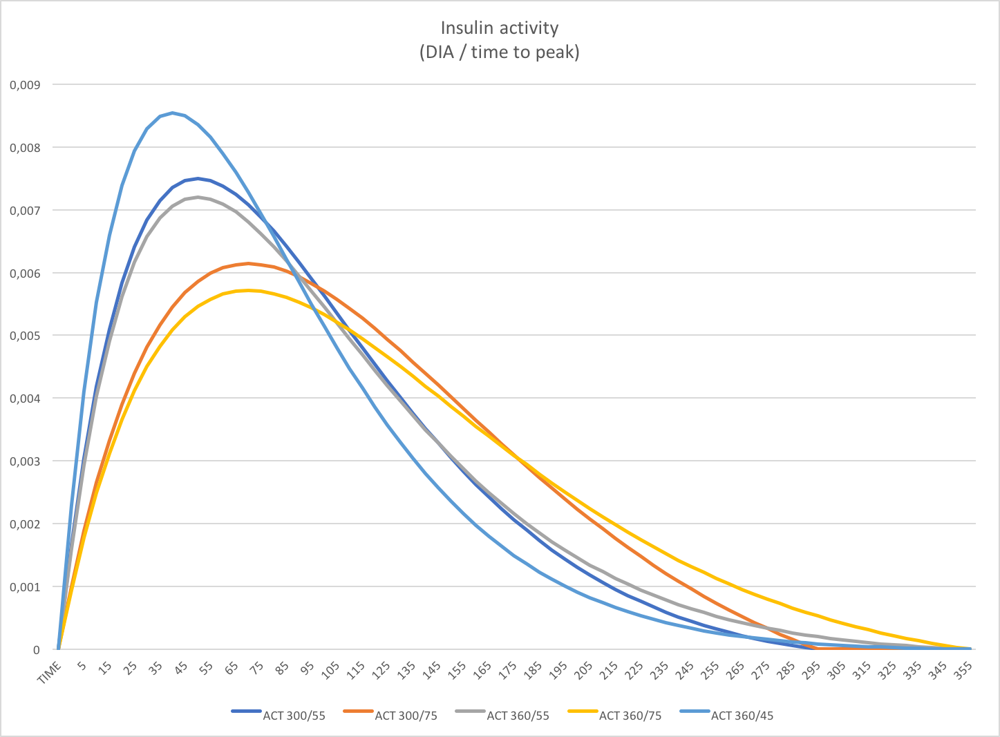 @PieterGit Start with DIA=5 and curve = fiasp. The peak time defaults to 55, which is the "official" peak from Novo. |