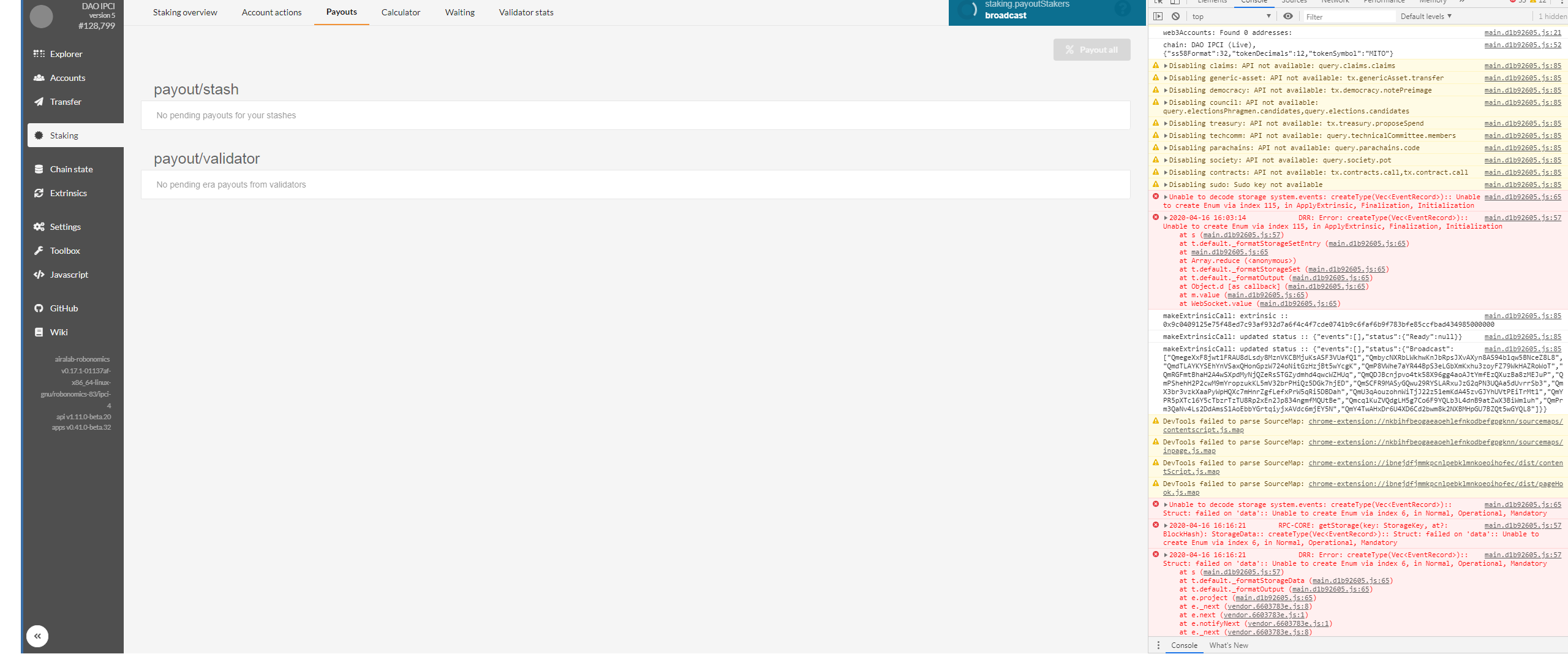 Broadcasting pop-up does not close and shows continious loading while sending extrinsics at substrate-network, but not in Kusama.