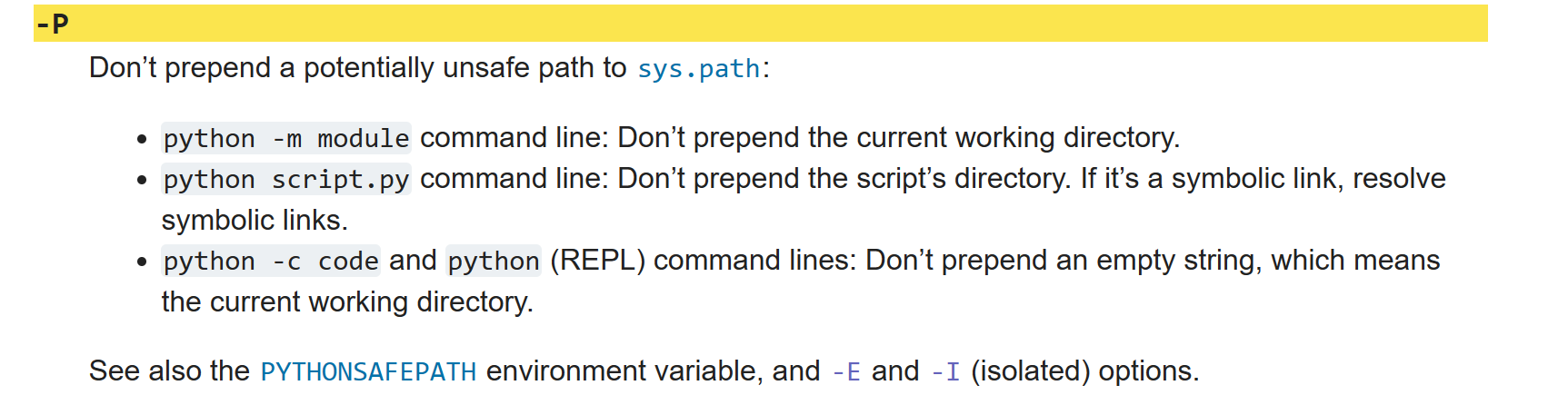-Iimplies-P, and-Pindicates "Don’t prepend the current working directory" when used with-mor-c:The description of