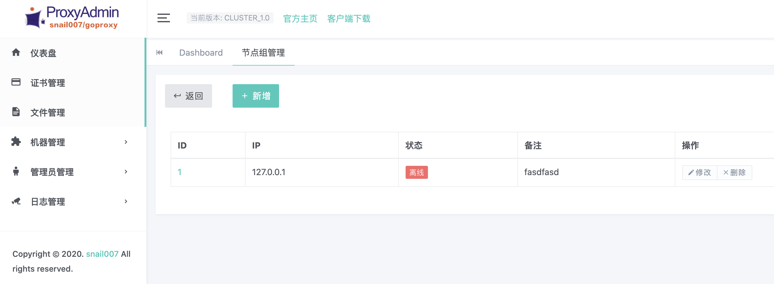 ProxyAdmin cluster version, is a powerful proxy service tool snail007/goproxy control panel, run it, one second let you have a proxy service to control massive machines, friendly The interactive interface, Newbie can also easily get started, so that you can use it handy and feel comfortable.