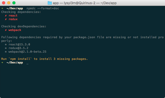 config.npmdc.format = "doc" # `short`, `doc`, `progress`. `short` by default