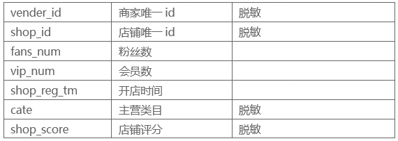 - 商店基础特征:粉丝数,会员数,商店评分,商店注册年份和天数