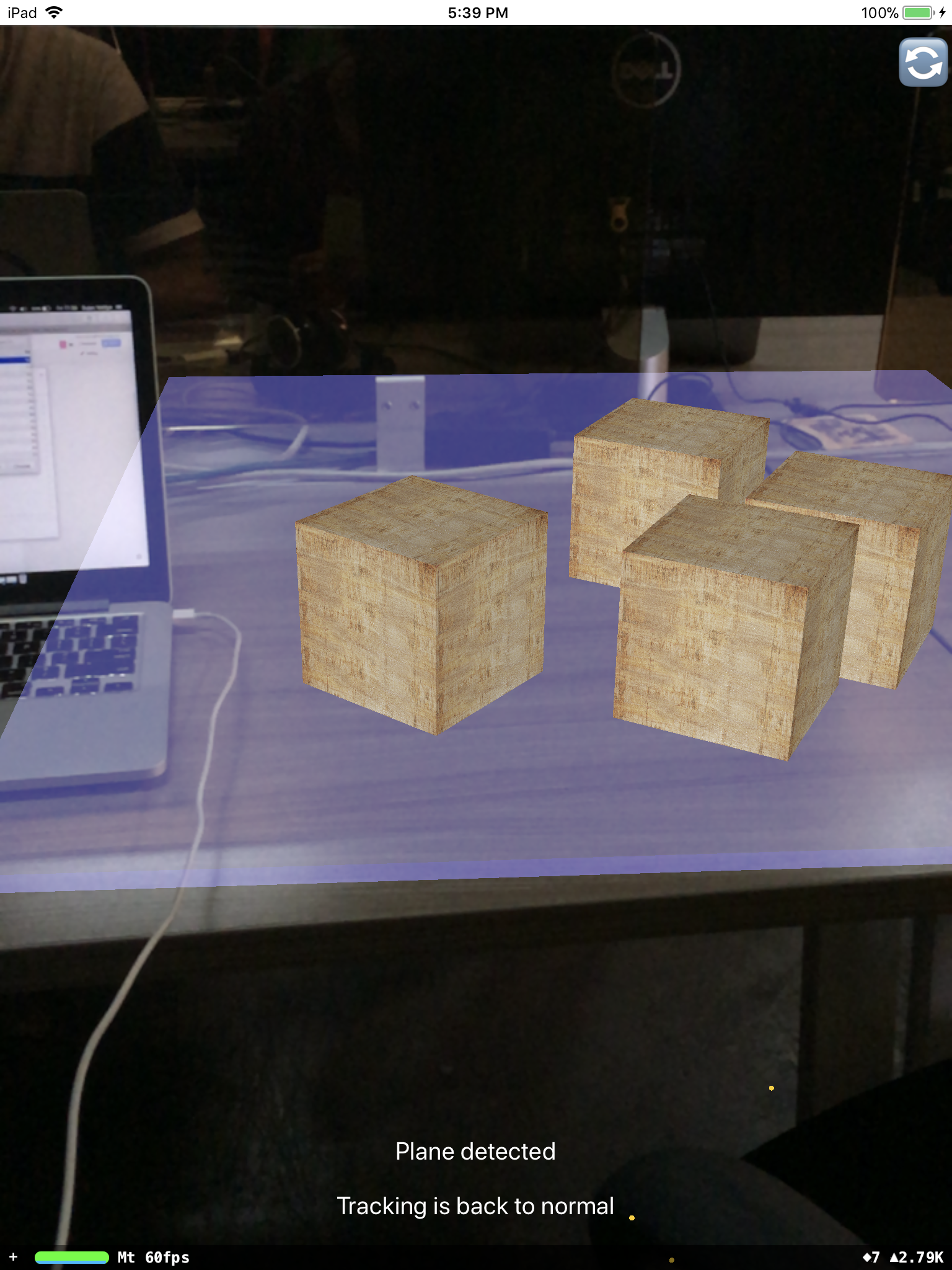 ARKit has its own view known as ARSCNView that allows real world scene to render through camera. This view has its session(ARSession) that reads data from the device's motion sensing hardware, controlls the device's built-in camera, and performs image analysis on captured camera images. To run the session we provide some configuration(ARConfiguration) to it. Since we want to track our world we use world tracking session(ARWorldTrackingConfiguration). Since we are placing cube to the plane, we place a virtual plane to the real world plane. For this we enable plane detection on session configuration. With plane detection configuration on, the plane in the real world is detected and ARKit provides anchor(translation, rotation, center and extent vector) of that respective plane. Using that anchor we can place geometric object to the real world. Here we place a plane to the real world. On taping around the plane, a cube(geometric box) falls from certain height and is placed into the plane. The cube behaves as a physics body(with gravity and act to collision) and its visible that the cube is placed into the real environment.