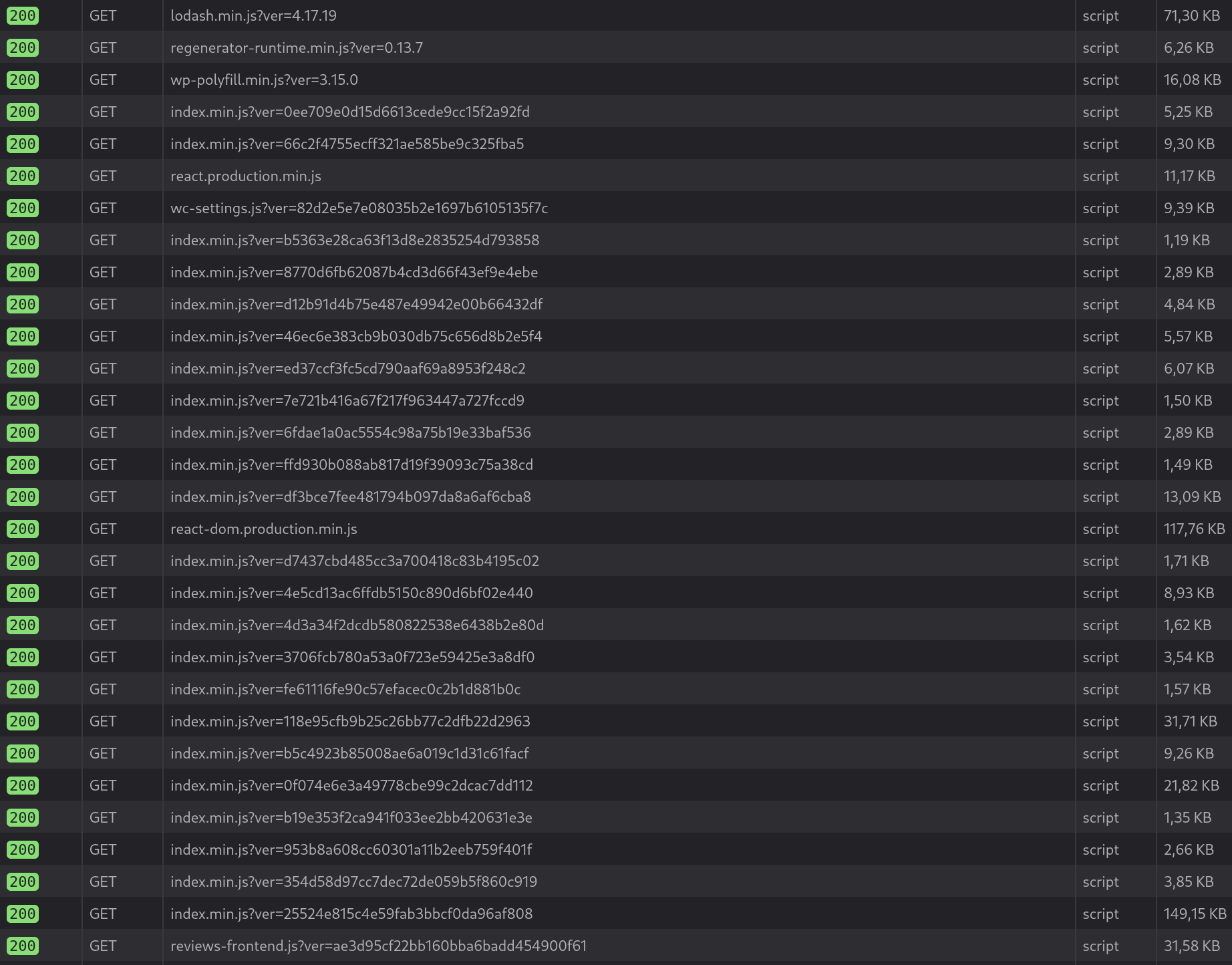 trunkand in this branch with Storefront:trunkExcluding all scripts unrelated to the block (jQuery, WC core scripts, etc.), it looks like this: