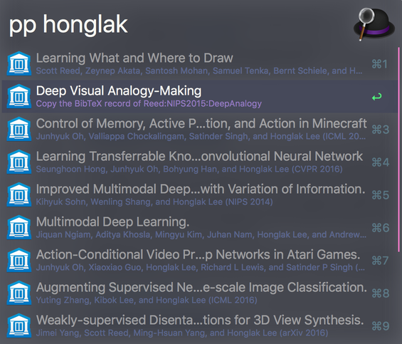 - Copy citekey or BibTeX strings into the clipboard