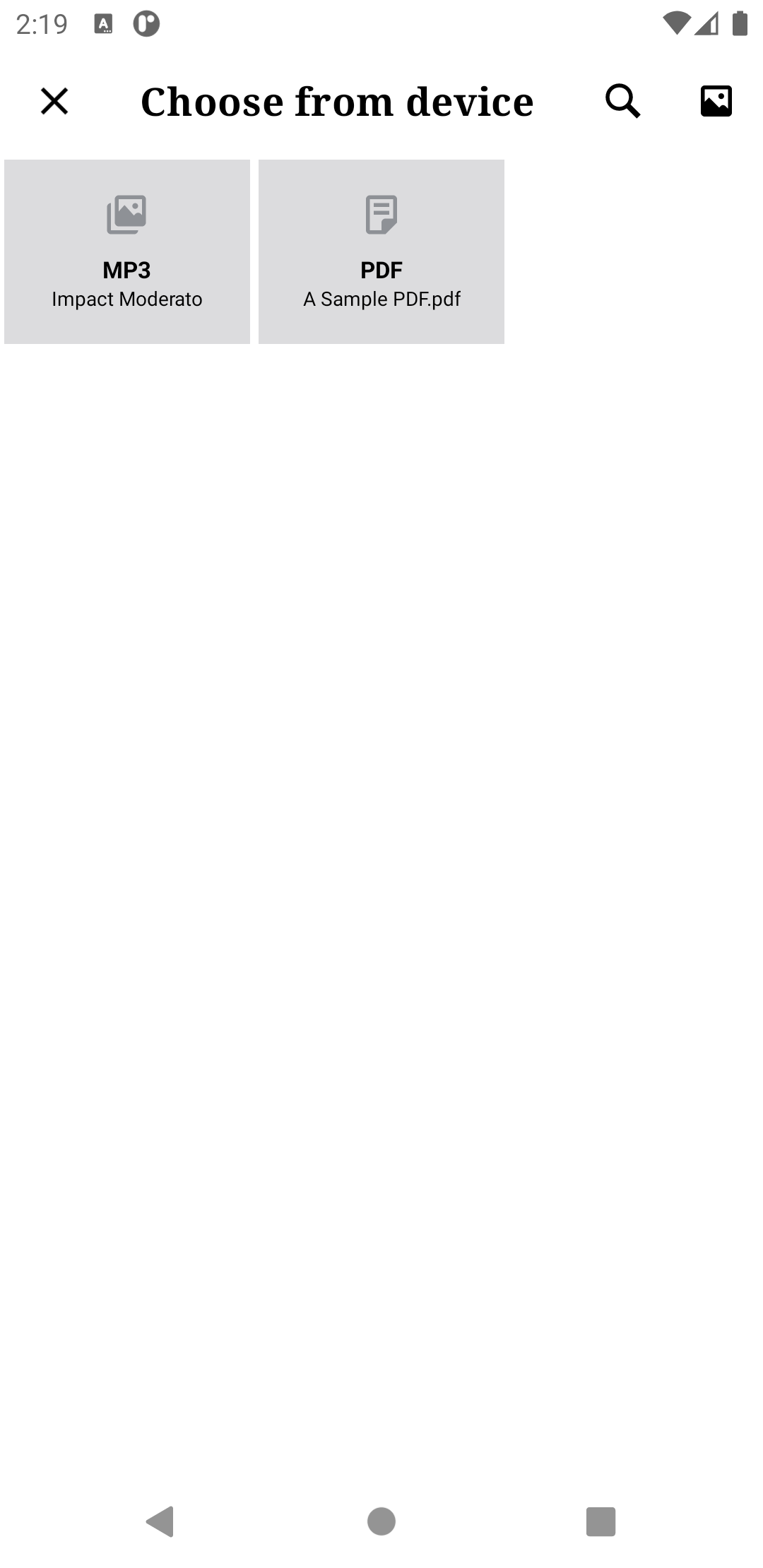@etoledom I think we're already using a "mobile phone" icon (or similar...I don't have my Android phone on me to check 😄) for other instances of the "choose from device" option, so we can use that same icon and label here. |