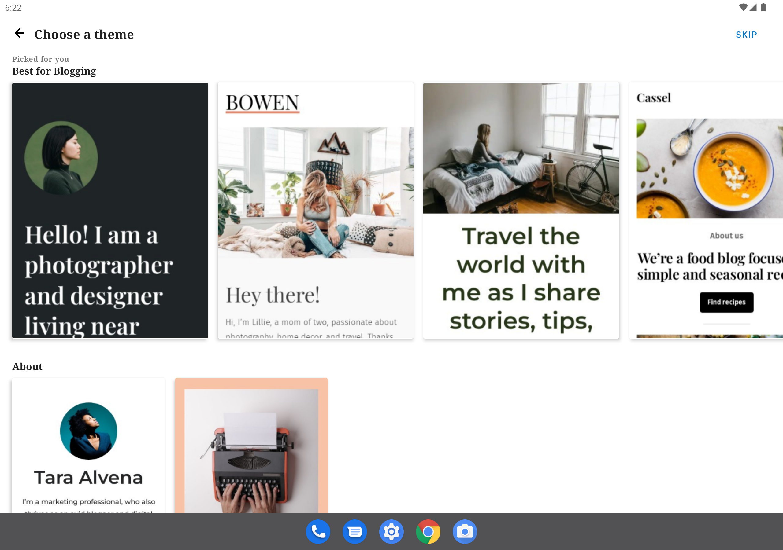 All 3 affected screens (Site Topic, Site Name, Site Theme) on mobile (portrait or landscape).
