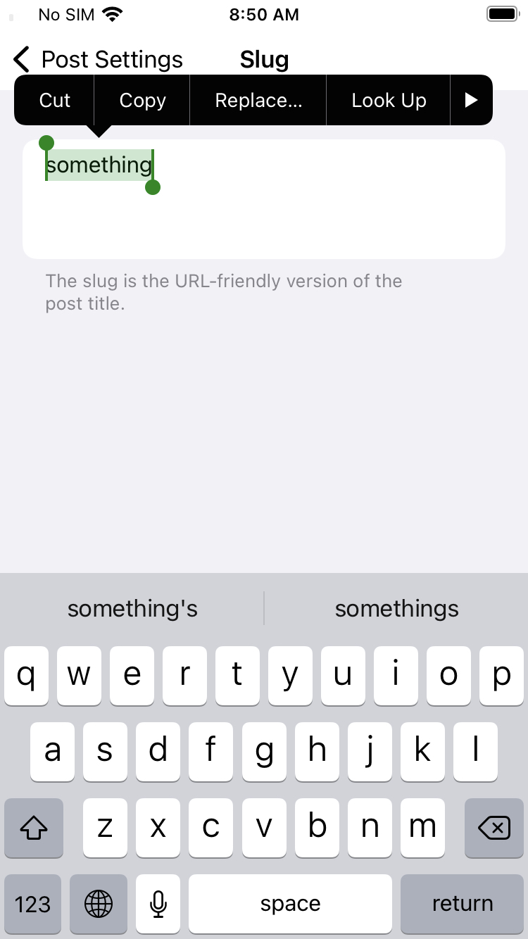 tintColorfor multiple UI elements in the Post Settings screen.Some hacky code has been used for the parent category screen (found within Post Settings). This was necessary because the screen is used elsewhere in the app (via Site Settings → Category) and there wasn't any other views in the hierarchy that could be used to only target the Post Settings UI: